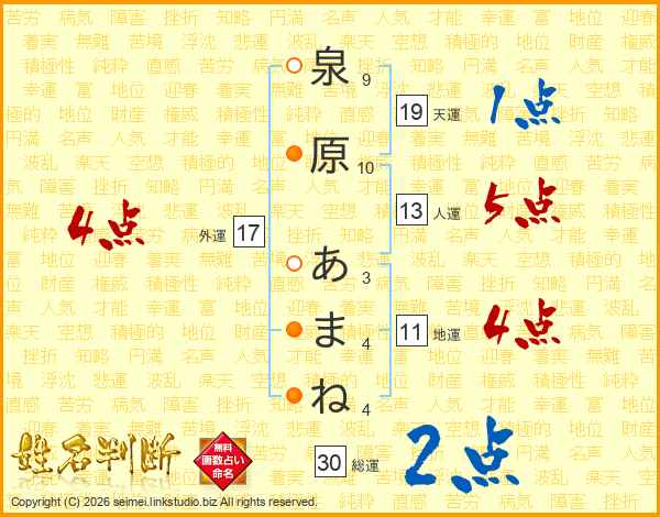 泉原あまねさんの人運は13画の5点!