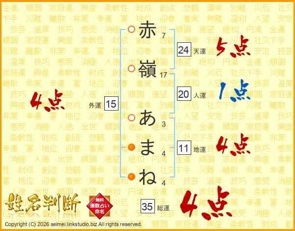 赤嶺あまねさんの総運は35画の4点!