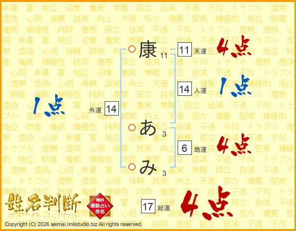 康あみさんの総運は17画の4点!