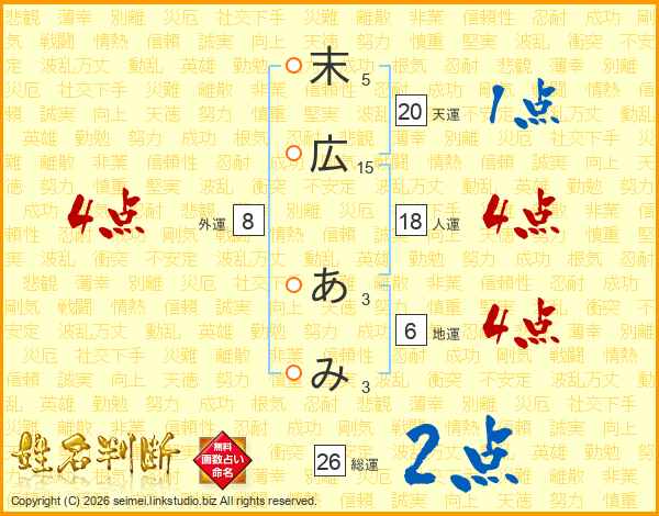 末広あみさんの総運は26画の2点!