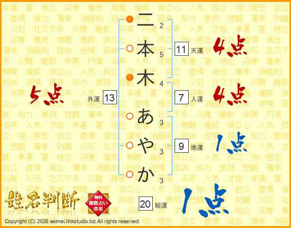 二本木あやかさんの天運は11画の4点!