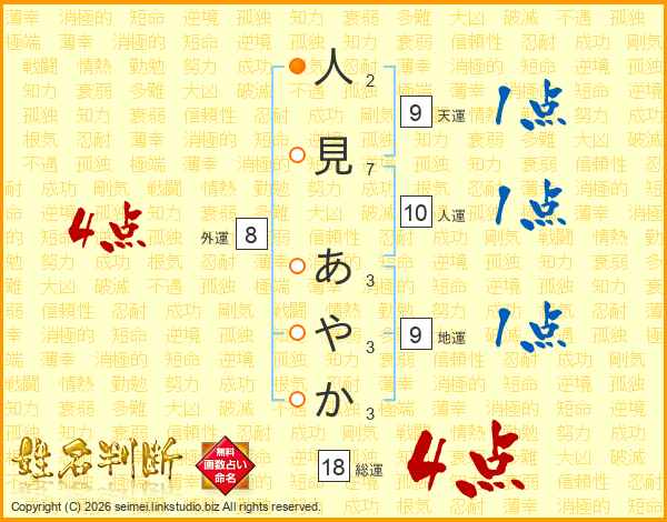 人見あやかさんの総運は18画の4点!