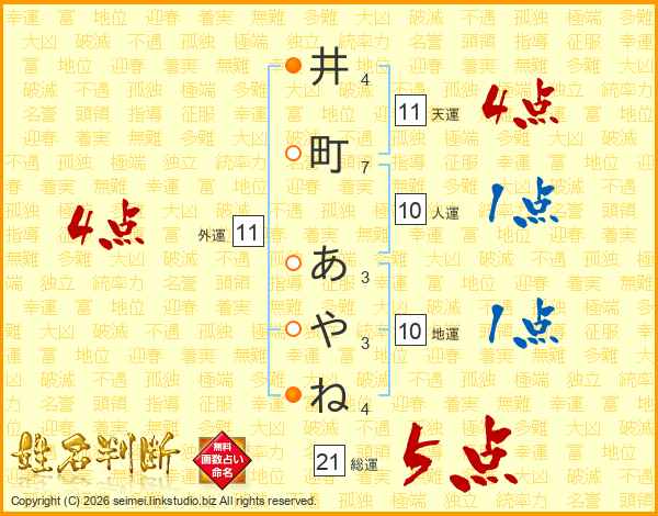 井(4画)町(7画) あ(3画)や(3画)ね(4画)