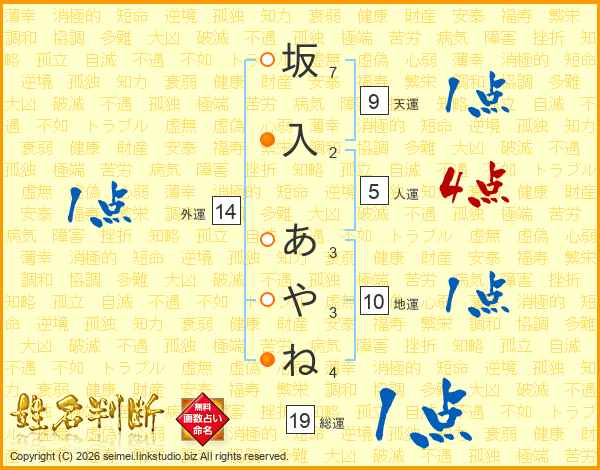 坂入あやねさんの外運は14画の1点!