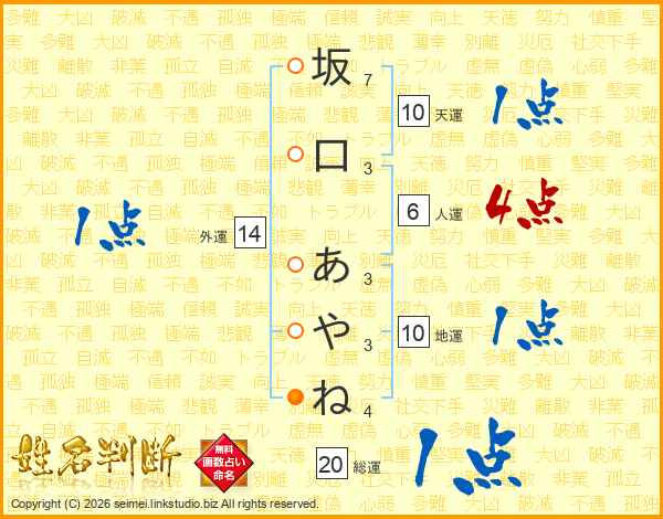 坂口あやねさんの総運は20画の1点!