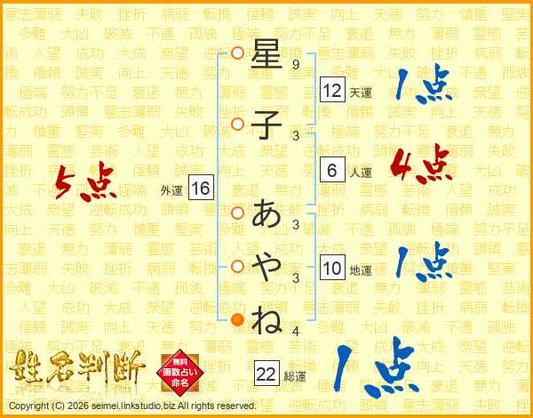 星子あやねさんの総運は22画の1点!