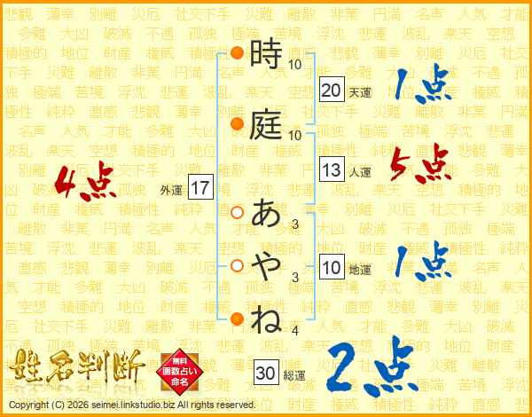 時庭あやねさんの総運は30画の2点!