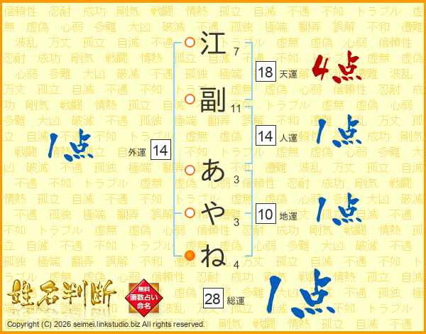 江副あやねさんの外運は14画の1点!