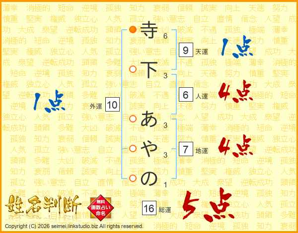 寺下あやのさんの総運は16画の5点!