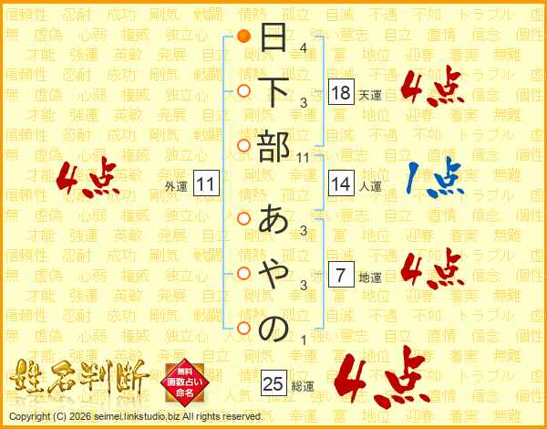 日(4画)下(3画)部(11画) あ(3画)や(3画)の(1画)
