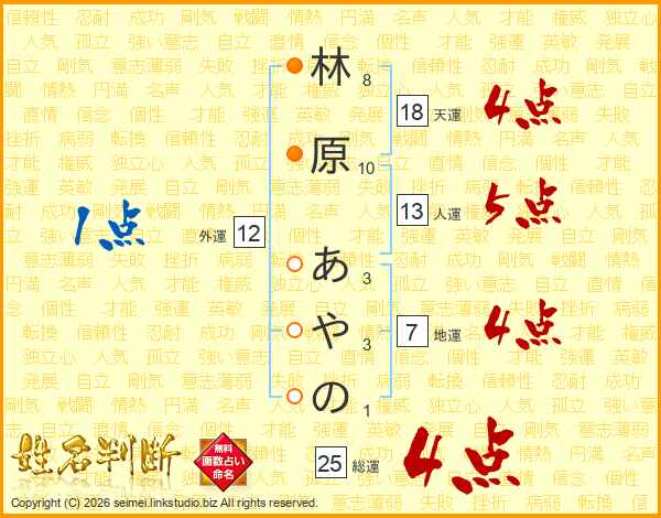 林原あやのさんの総運は25画の4点!