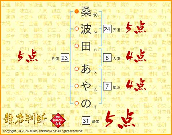桑(10画)波(9画)田(5画) あ(3画)や(3画)の(1画)