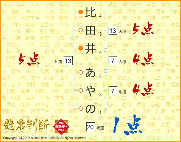 比田井あやのさんの外運は13画の5点!