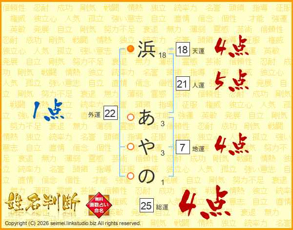 浜あやのさんの総運は25画の4点!