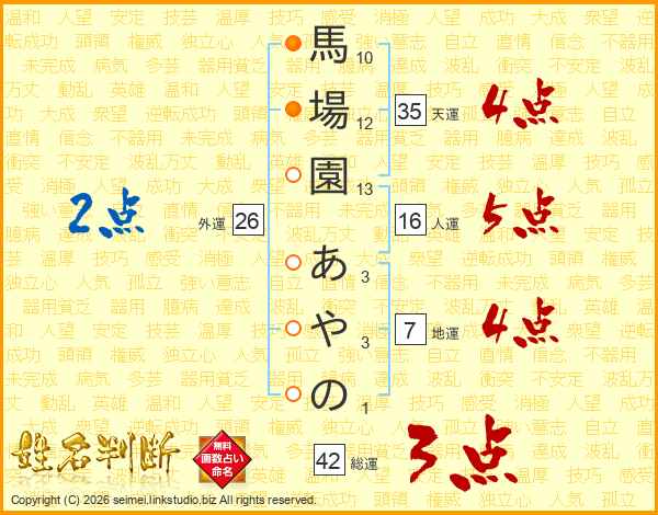 馬場園あやのさんの総運は42画の3点!