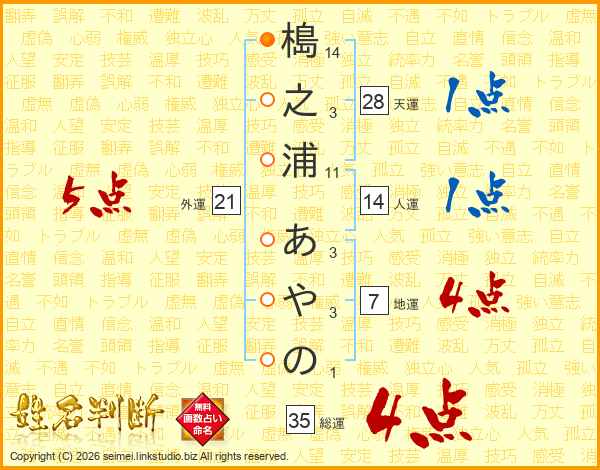 槝之浦あやのさんの総運は35画の4点!