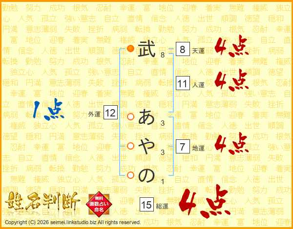 武あやのさんの総運は15画の4点!