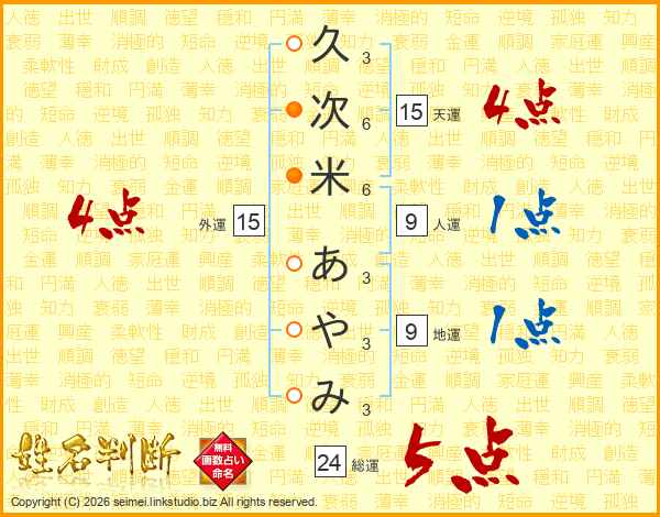 久(3画)次(6画)米(6画) あ(3画)や(3画)み(3画)