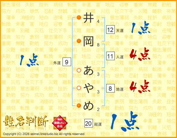 井岡あやめさんの人運は11画の4点!
