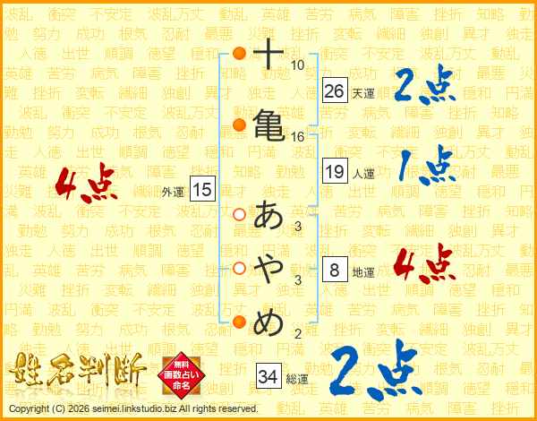 十亀あやめさんの天運は26画の2点!