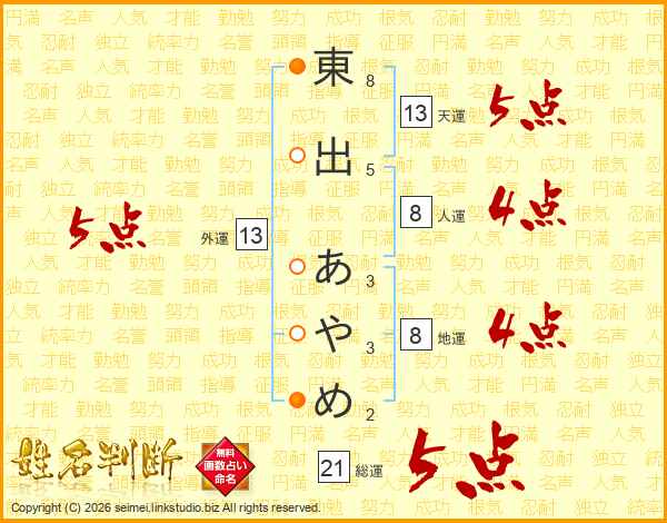 東出あやめさんの総運は21画の5点!