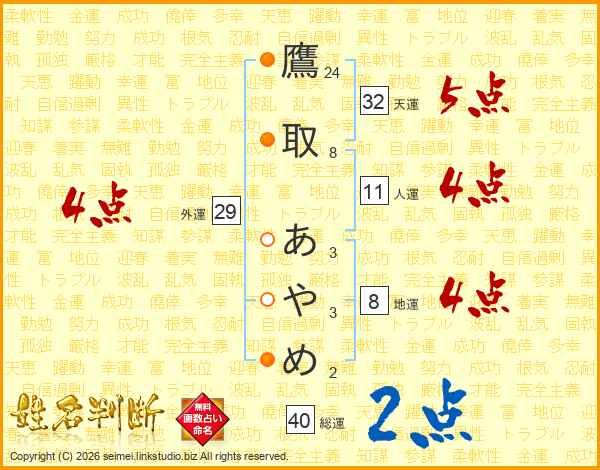 鷹(24画)取(8画) あ(3画)や(3画)め(2画)