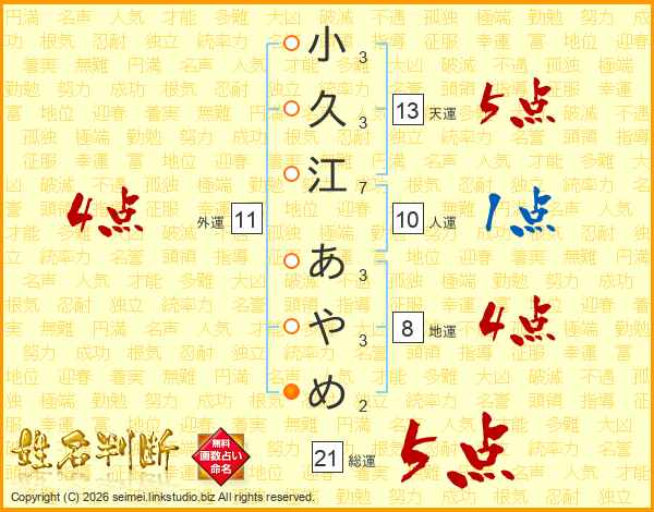 小(3画)久(3画)江(7画) あ(3画)や(3画)め(2画)