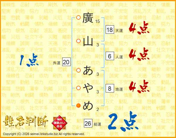 廣山あやめさんの総運は26画の2点!
