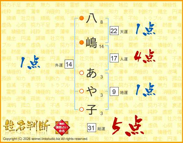 八嶋あや子さんの外運は14画の1点!
