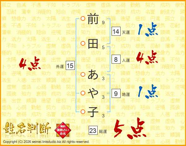 前田あや子さんの総運は23画の5点!
