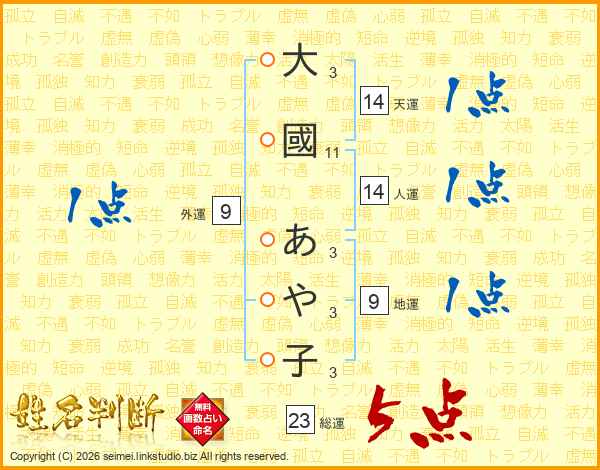 大國あや子さんの総運は23画の5点!