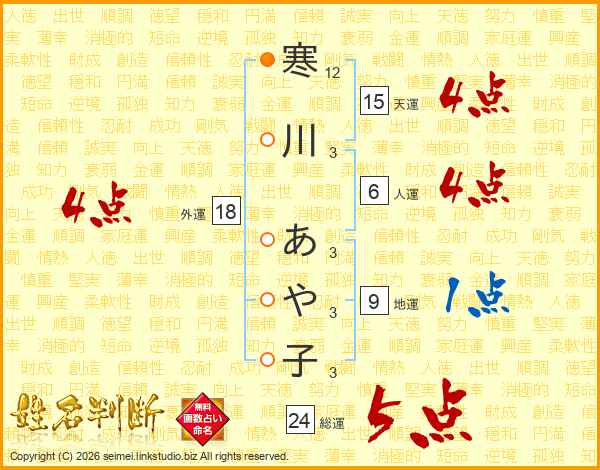 寒(12画)川(3画) あ(3画)や(3画)子(3画)