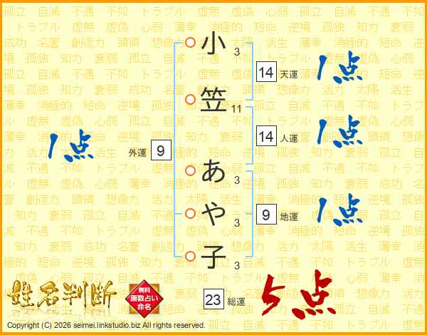 小笠あや子さんの総運は23画の5点!