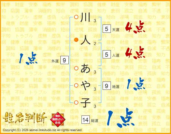 川人あや子さんの総運は14画の1点!