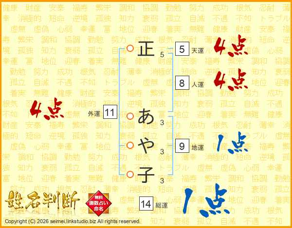 正あや子さんの総運は14画の1点!