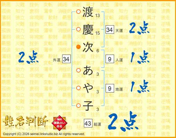 渡慶次あや子さんの外運は34画の2点!