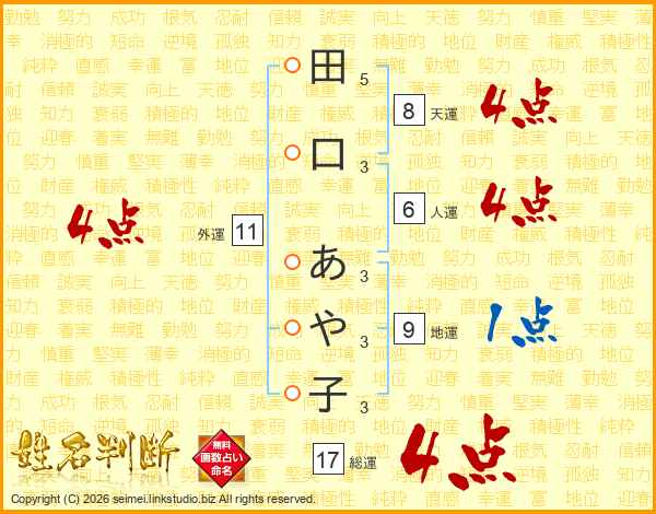 田口あや子さんの総運は17画の4点!