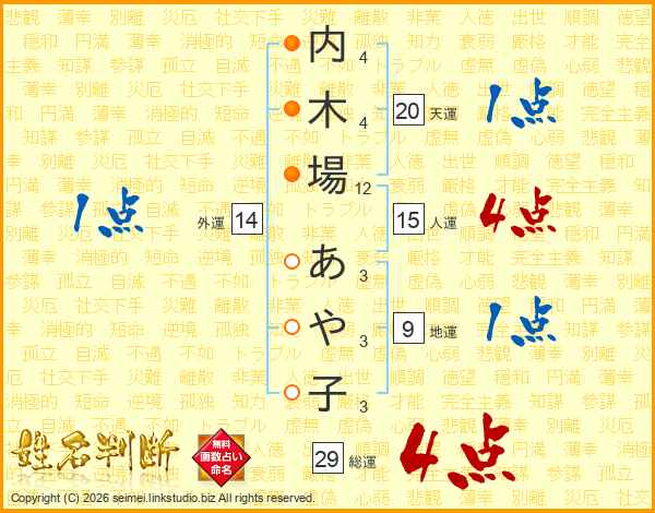 内木場あや子さんの総運は29画の4点!
