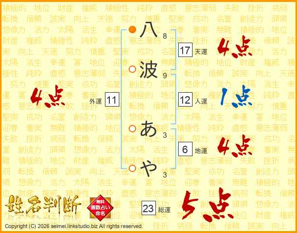 八波あやさんの天運は17画の4点!