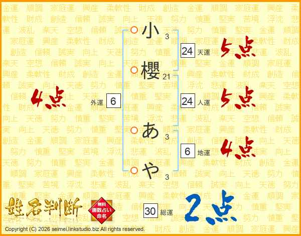 小櫻あやさんの総運は30画の2点!