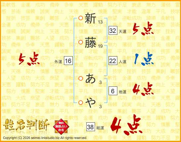 新藤あやさんの総運は38画の4点!