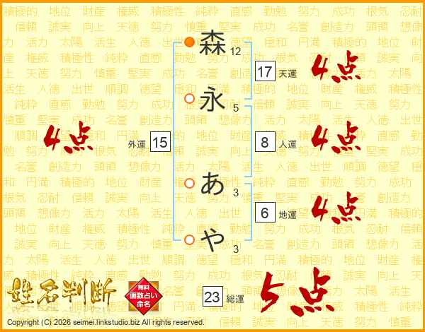 森(12画)永(5画) あ(3画)や(3画)