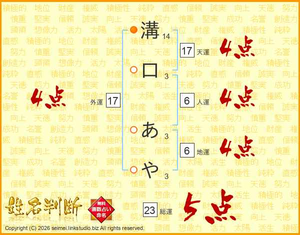 溝口あやさんの天運は17画の4点!