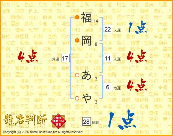 福岡あやさんの人運は11画の4点!