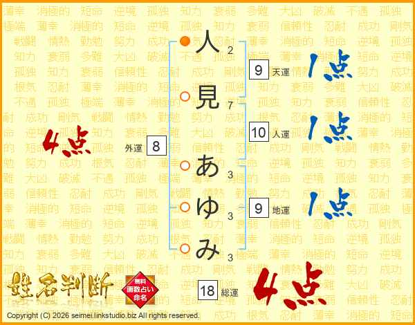 人見あゆみさんの総運は18画の4点!