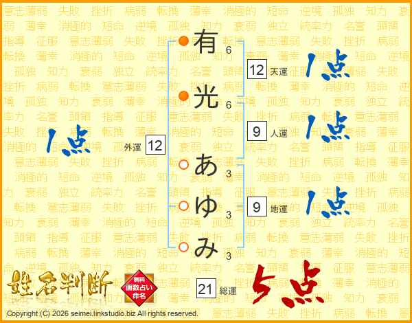 有(6画)光(6画) あ(3画)ゆ(3画)み(3画)