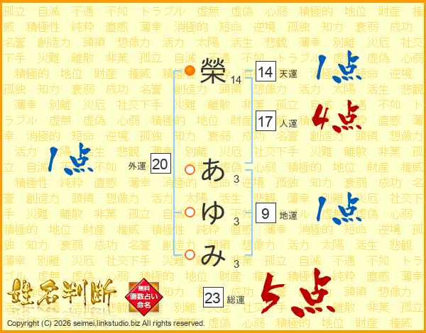 榮(14画) あ(3画)ゆ(3画)み(3画)