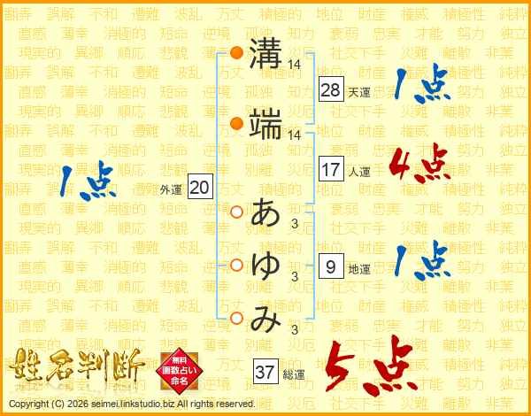 溝端あゆみさんの総運は37画の5点!