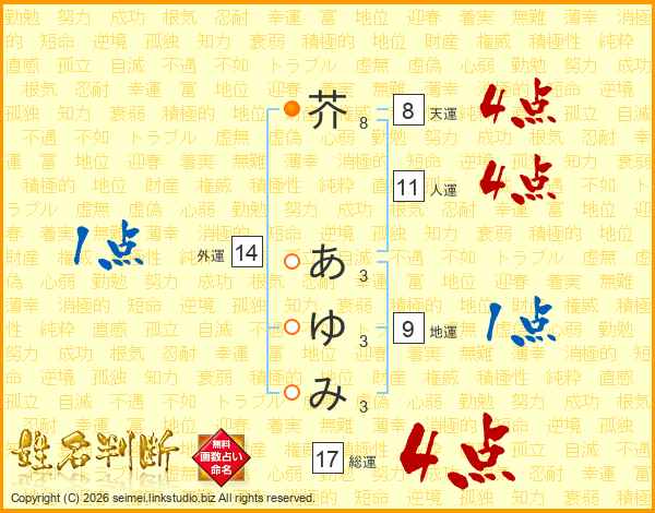 芥あゆみさんの総運は17画の4点!
