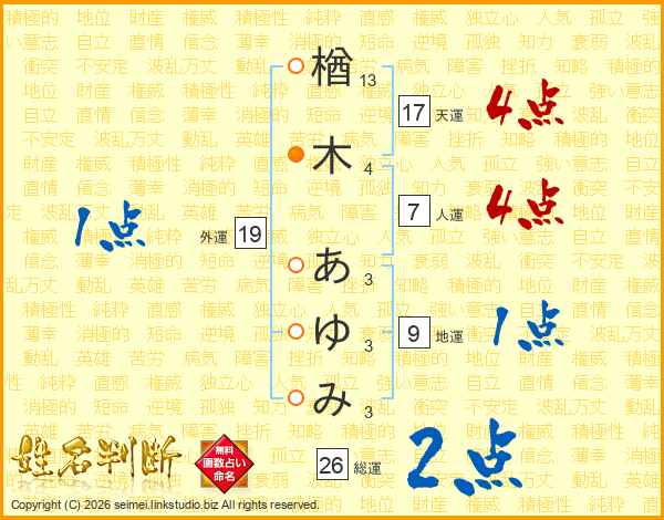 楢(13画)木(4画) あ(3画)ゆ(3画)み(3画)